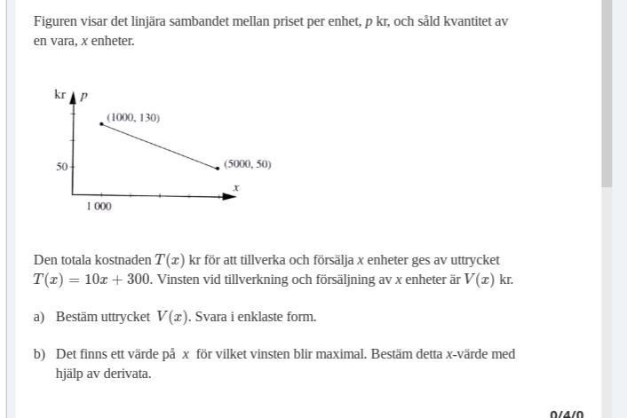I facit står det att det blir v(x) = 140x - 0,02x^2 - 300