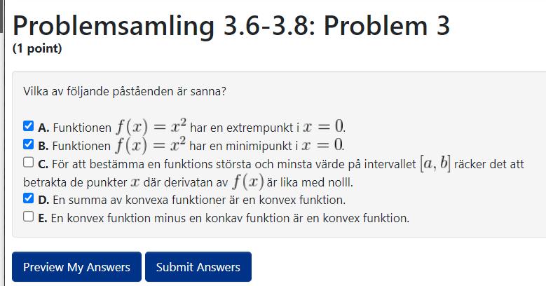Jag vet att A och B är rätt (och att E är fel) men för de andra är jag osäker på trodde starkt på att det var A, B och D som ni kan se att jag svarat men detta var fel