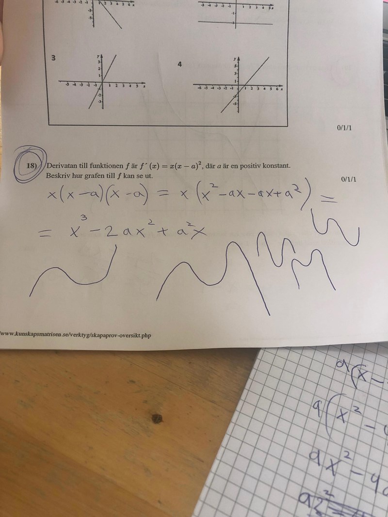 Har försökt lösa 18 och jag får det inte till en terasspunkt vilket det ska vara.. jag får ekvationen till f(x)=((x^4)/4)-((2x^3)/3)+x/3