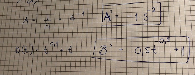 Fyran såg jag inte, men vi är säkert överens om att derivatan av s^-4 blir -4 * s^(-5)