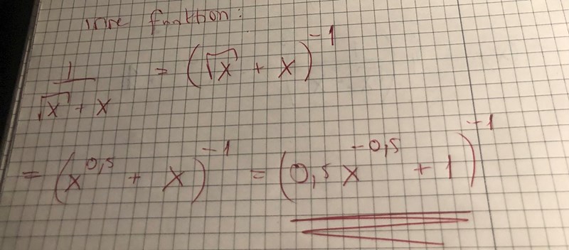 Men det går inte matematiskt. Så kan man derivera de fast de ligger nämnaren så det blir i nämnaren: