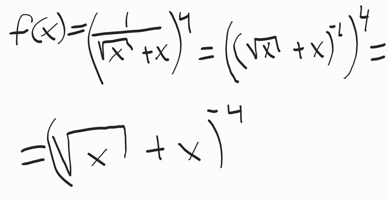 (Det står upphöjt med 4 dvs jag vet vad den yttre funktionen är men det är det inte funktionens derivata jag fastnar på dvs derivatan inuti parentes.)