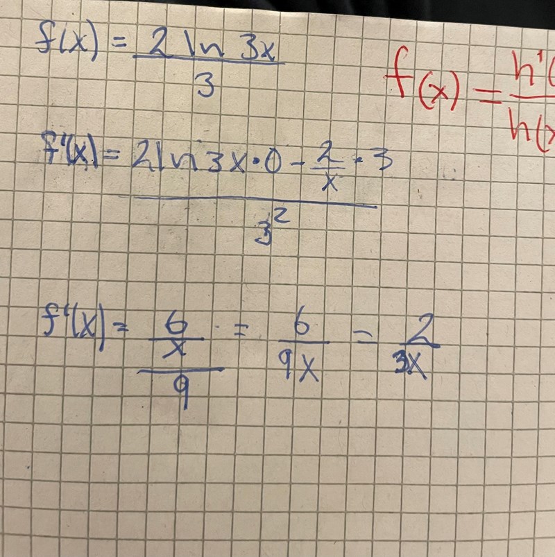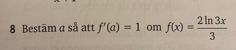 Om f'(x) = 2/(3x) så är f'(a) = 2/(3a).