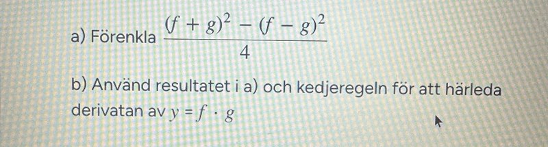 så om du då deriverar högerledet i ekvationen ovan, så får du alltså d(f*g)/dx som man frågar efter.