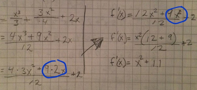 Nej det är fel, Den första termen är korrekt vad händer med två i andra termen? Använd dig av:
