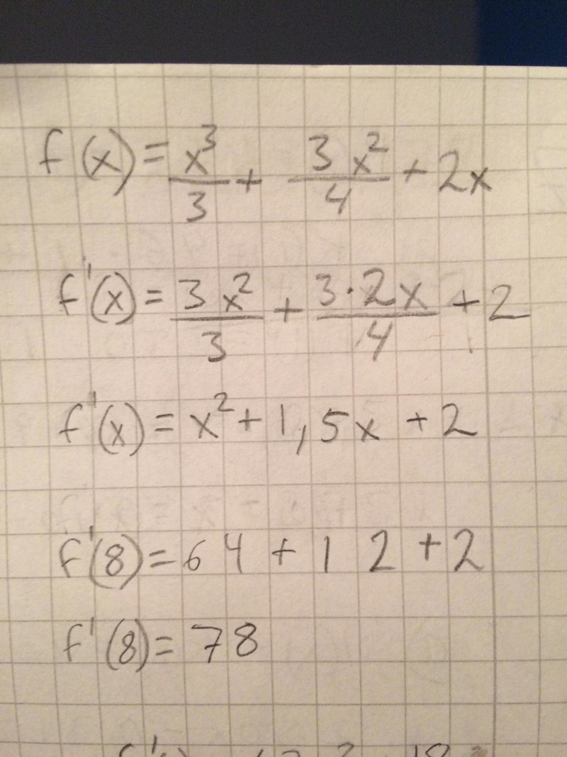 Alltså att derivatans värde är 0,85 när x=8? f’(8)=0,85