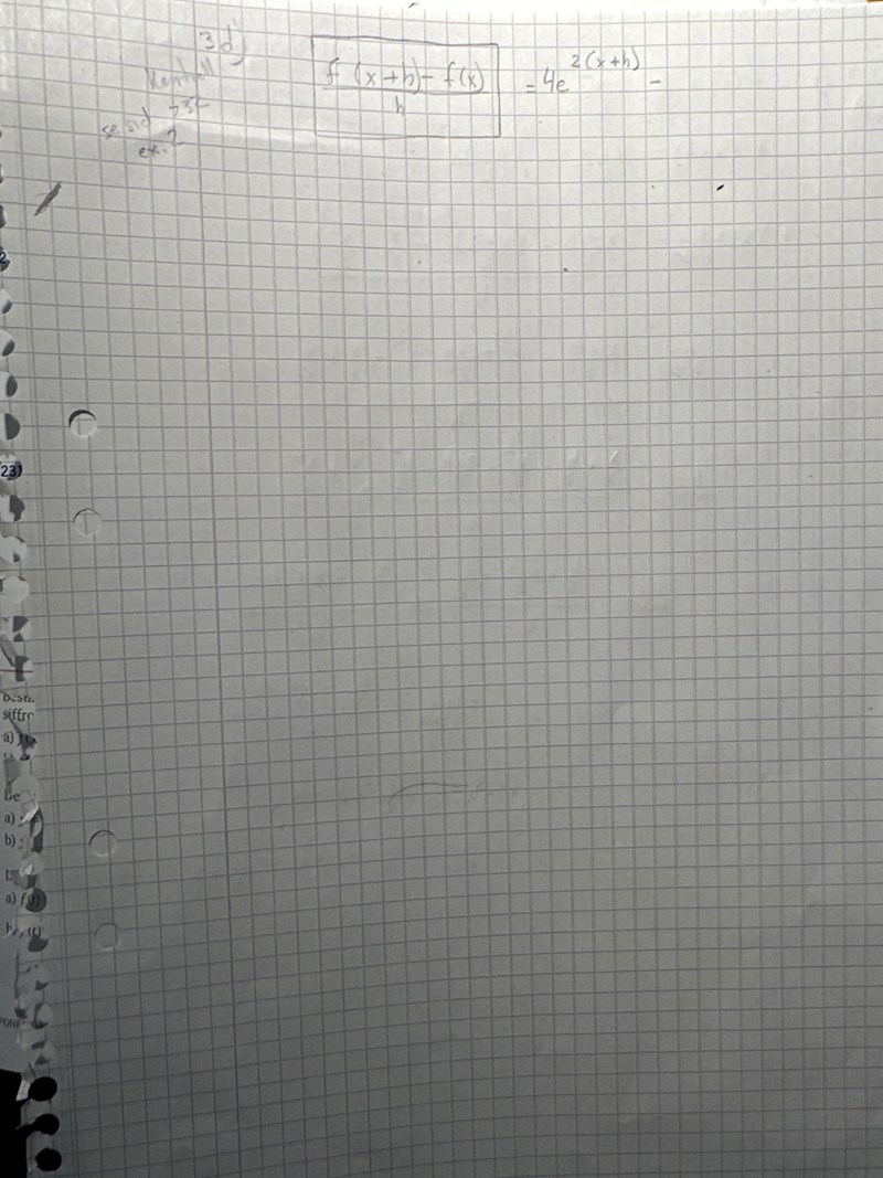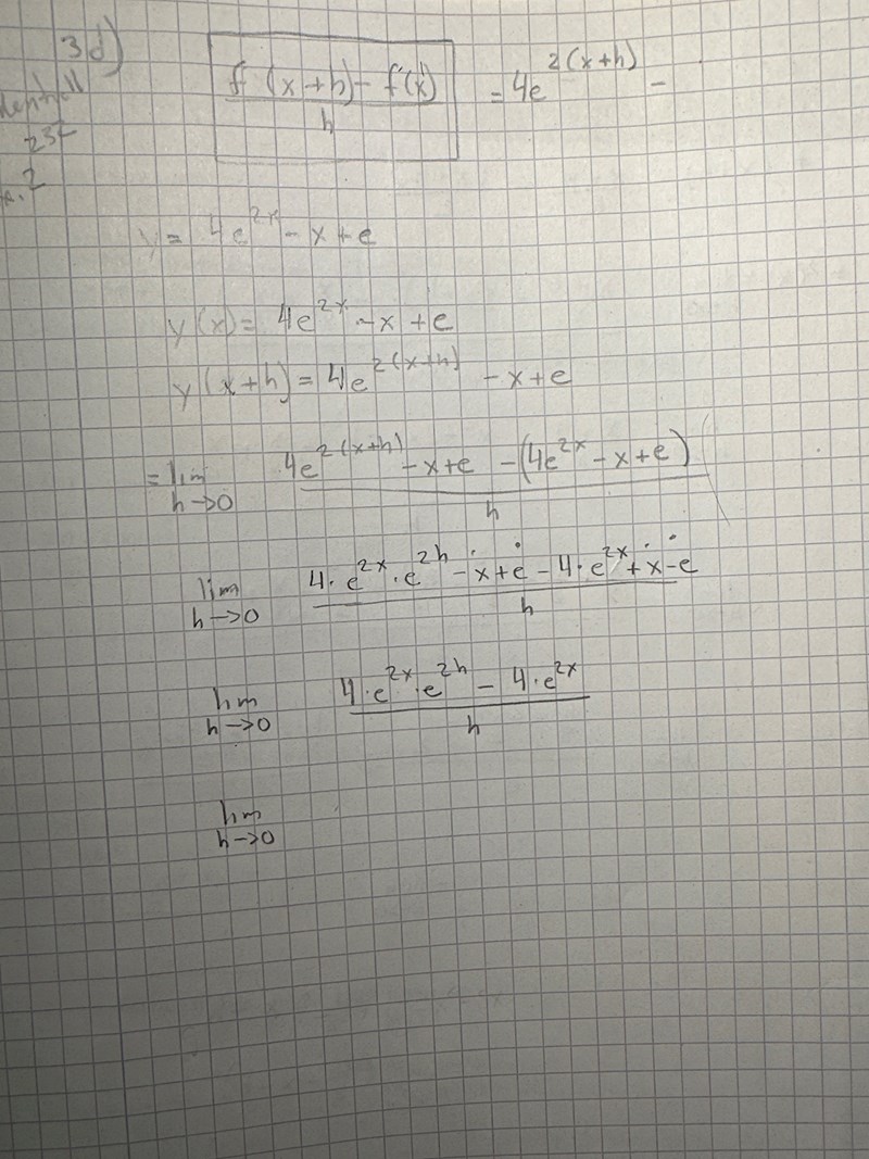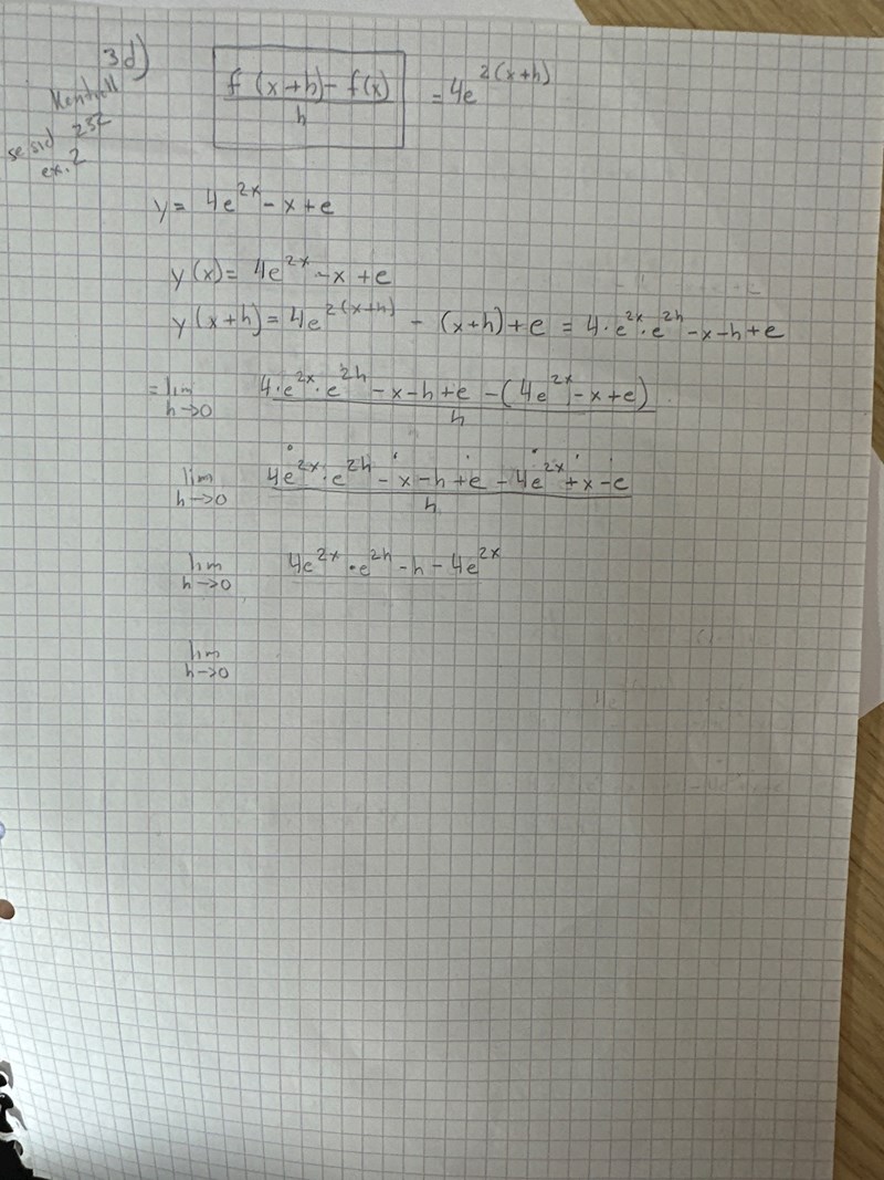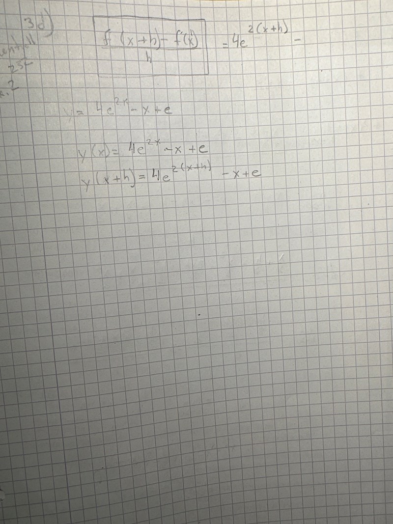 Om y(x) = 4e2x-x+e så är y(x+h) = 4e2(x+h)-(x+h)+e.
