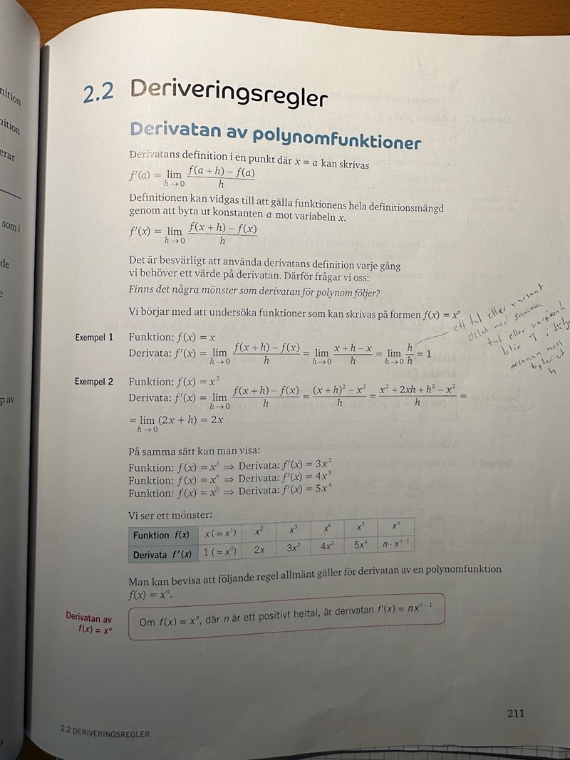 Det räckte egentligen med deriveringsregeln.