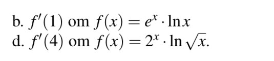 Kontrollera derivatorna av 2x, ln och kedjeregeln med en formelsamlingen (exempelvis formelsamlingen.se)