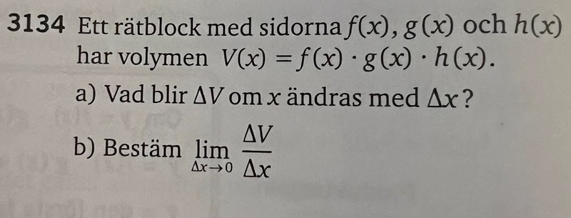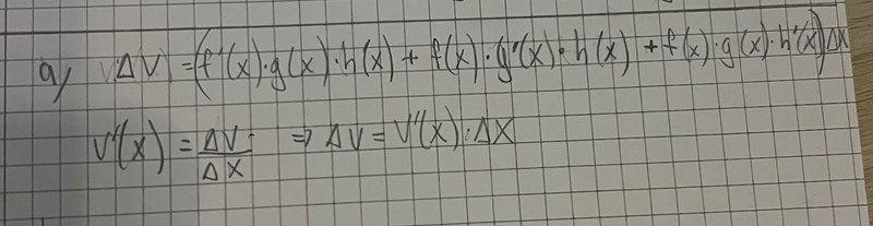 Saknas lite termer. Sätt v(x)=f(x)g(x), beräkna v’(x) och V’(x). Inuti V’(x) finns det v’(x) som du kan byta ut mot vad du precis räknade ut.