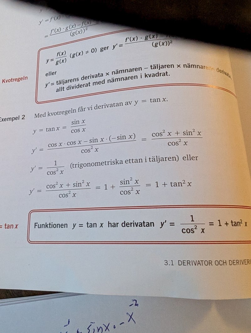 Så det står längst ned att y' kan vara = 1/(cosx)^2 eller 1+ (tan(x))^2