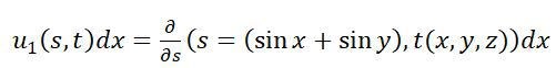 Men, jag vet hur de ingående funktionerna s(x,y,z) och t(x,y,z) ser ut och jag kan räkna ut vad de blir i punkten (0,(pi/2),pi) . Vad jag dock har svårt att förstå/greppa är betydelsen av derivatan med avseende på första delfunktionen du/ds (eller u1(s,t)). Kan jag räkna ut den eller bör jag presentera svaret som det står skrivet ovan?