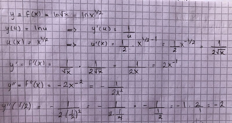 I frågan vi skulle bestämma f´´(1/2) då f(x) = ln√x