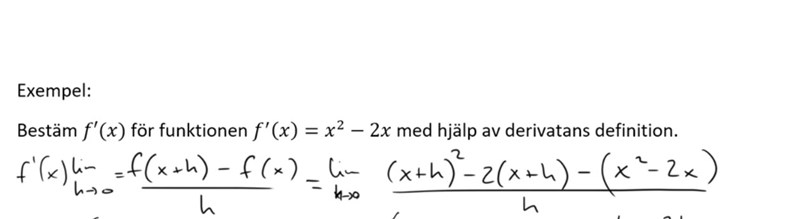 Fattar någon varför man stoppar in y värderna i derivatans definition (x+ h) oxh (x) i derivatan och inte i funktionen? Måste han inte skriva om derivatan till en funktion och sen göra som det står ovanför ?