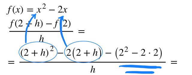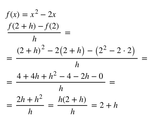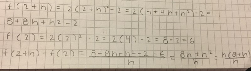 f(2+h) bör ju betyda y då x är =2+h och då om man sätter in den funktionen i definitionen blir det ju fel!