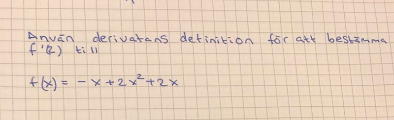 Jag får svaret f’(x)=4x+1. Min matteboken har ingen facit