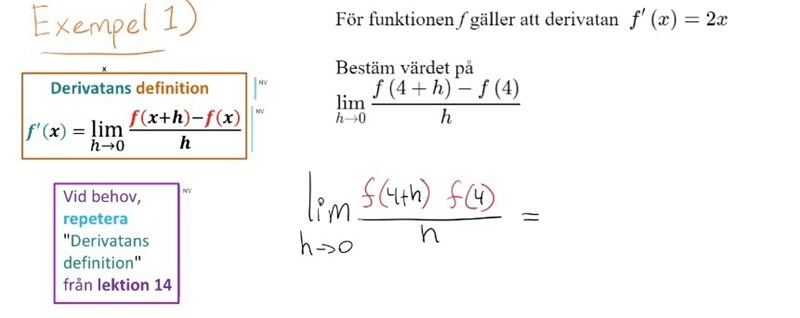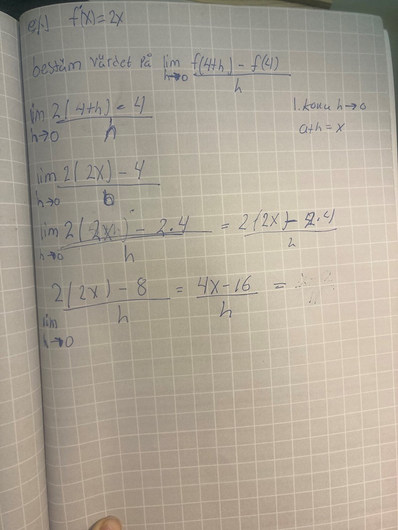 Typ: givet f(x), ställ upp det gräsvärde som definierar f'(4).
