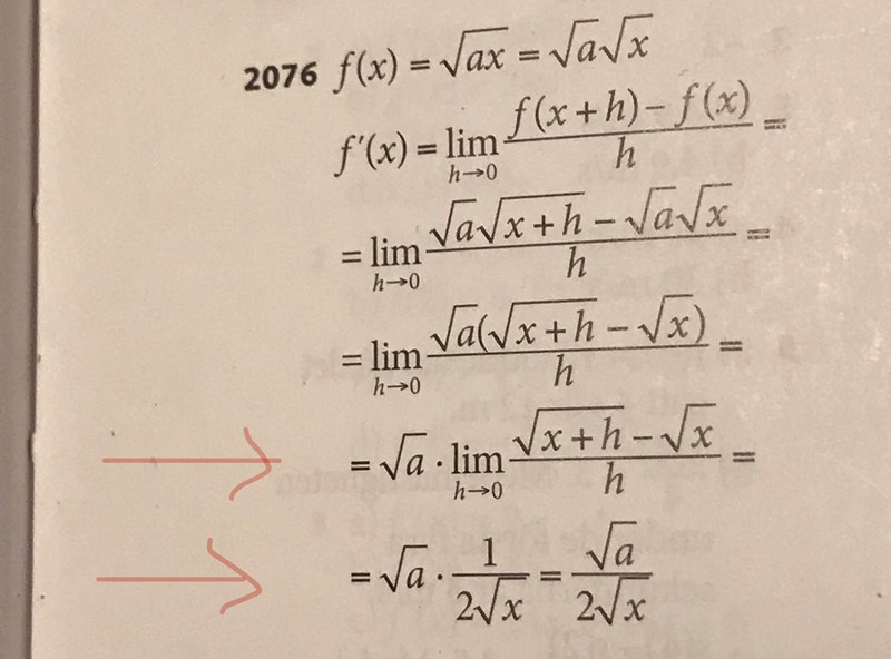 sista raden: förstår inte vad dom har gjort? Har dom stoppat 0 i h? Men det går inte eftersom man inte kan ha noll i nämnaren. Har dom gjort om uttrycket och sen stoppat in noll?