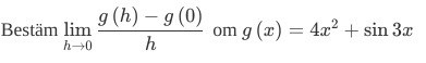 Är inte detta derivatans definition? Och vi ska bestämma f'(0) = 8*0 + cos(3*0) = cos(0) =