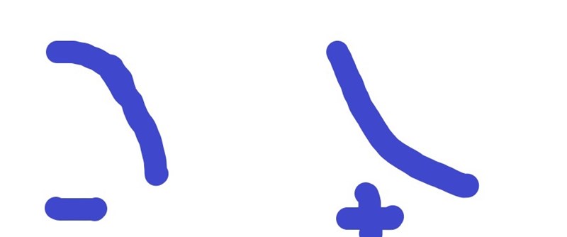 Här är två fula grafer med negativ förstaderivata, andraderivatans tecken står under