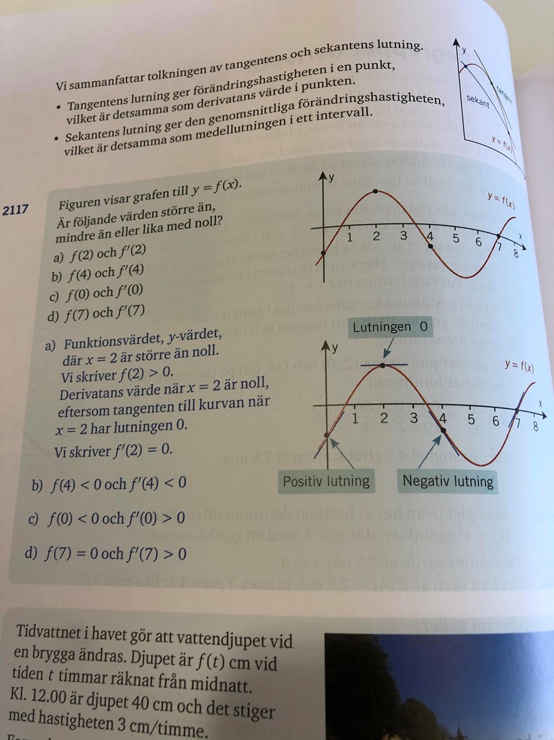 Jag förstår inte varför derivatan blir 0 när x=2. Kan någon förklara detta
