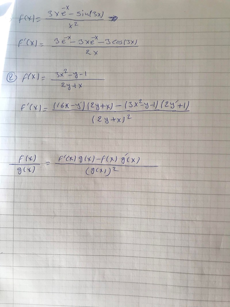Bubo skrev:Men derivatan av ( f/g ) är inte f' / g'