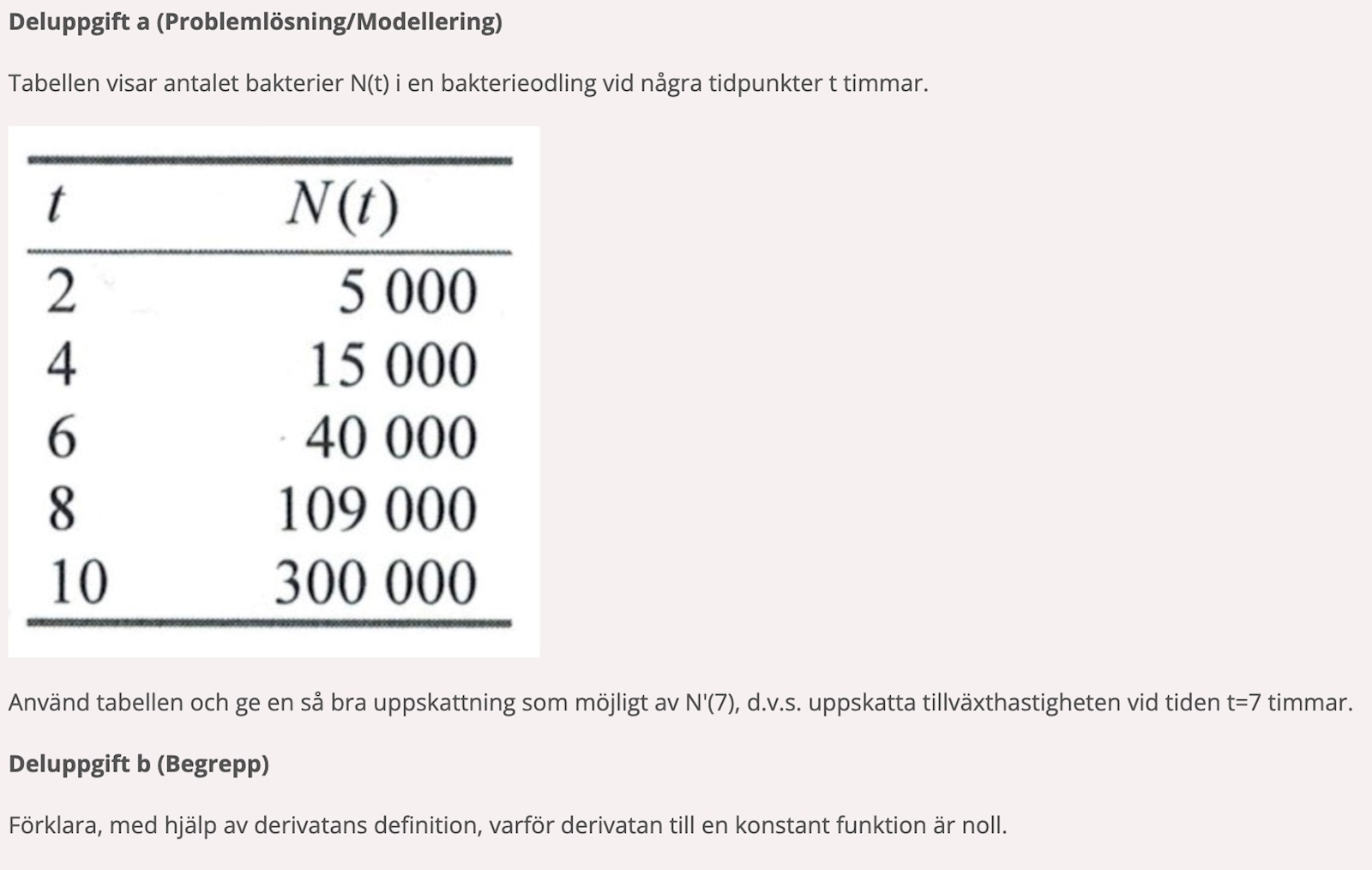 Derivatan kan i det här fallet ses som hur mycket som N förändras i förhållande till hur mycket som t ändras, .