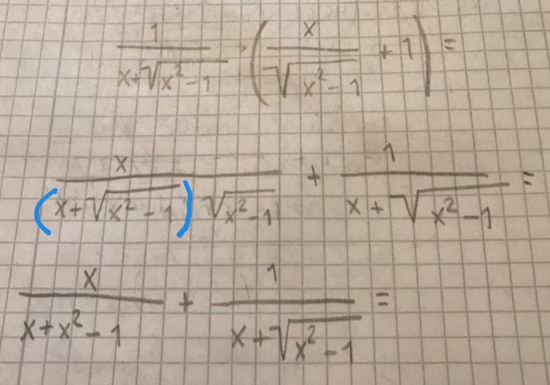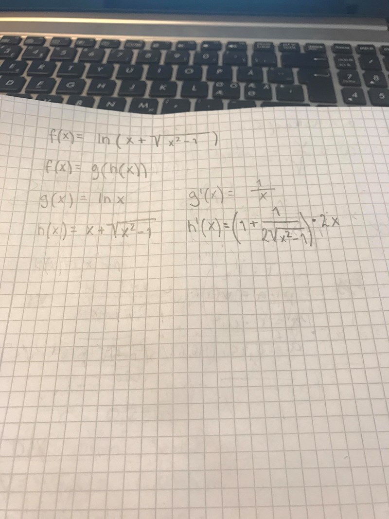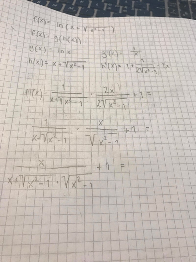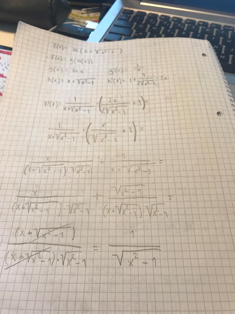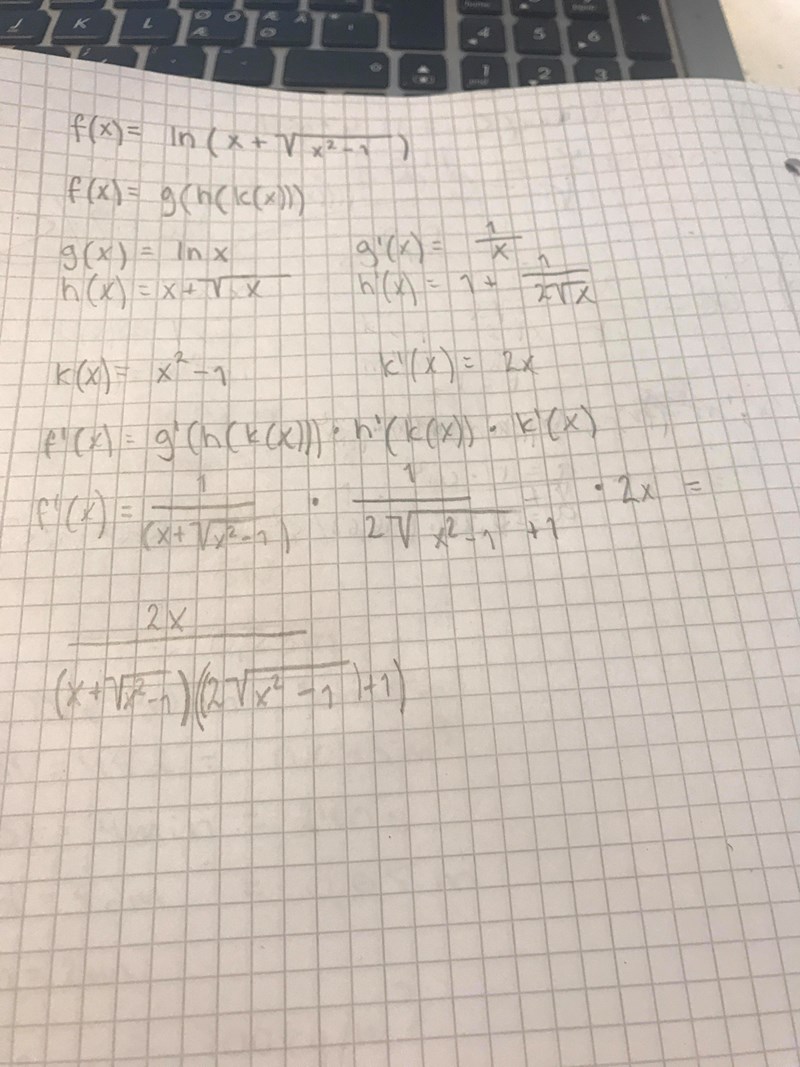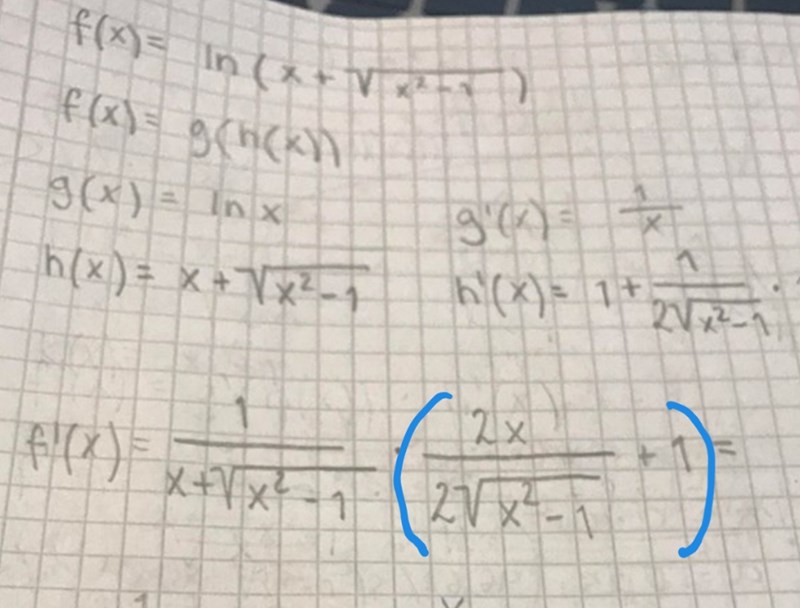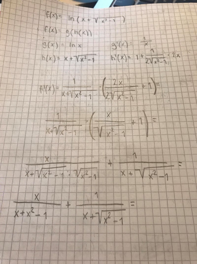 Det blir konstigt med dina h(x) och k(x). h(k(x)) borde bli x+x2-1x + \sqrt{x^2-1} men med dina funktioner blir det x2-1+x2-1x^2-1 + \sqrt{x^2-1}.