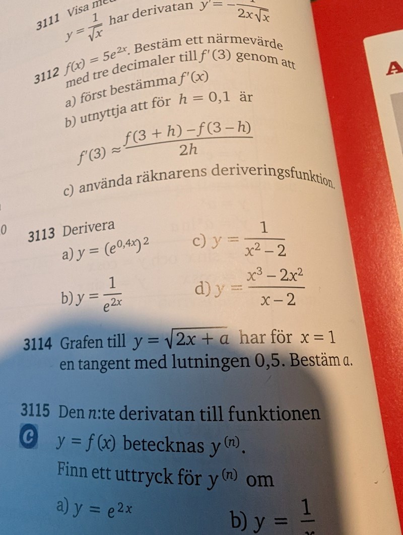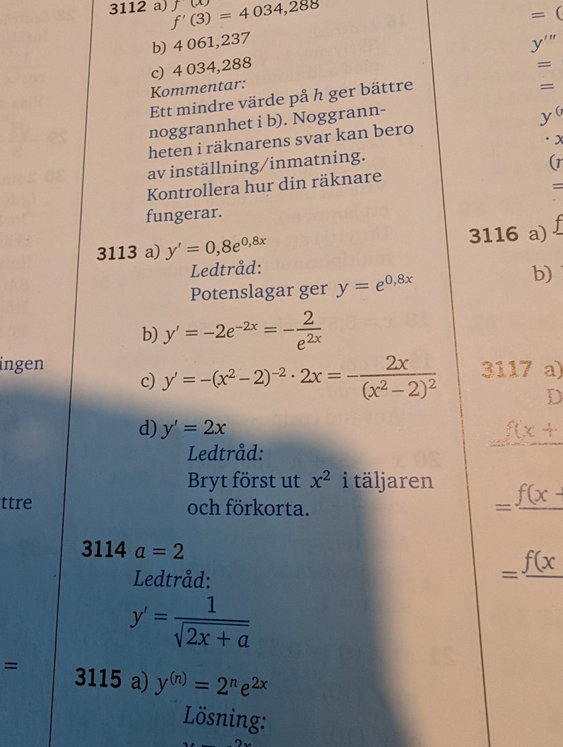 Alternativt kan kedjeregeln användas (facit verkar ha använt den), d.v.s.  (f(g(x)))'=f'(g(x))·g'(x)(f(g(x))^{\,})^\prime = f^\prime(g(x)) \cdot g^\prime(x),  där  y=f(t)=t-1y=f(t) = t^{-1} och t=g(x)=x2-2t = g(x) = x^2 - 2.  Den givna funktionen betraktas alltså som en sammansatt funktion y=(x2-2)-1y = (x^2 - 2)^{-1}.