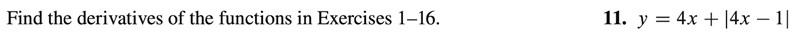 Ok, då antar jag i alla punkter. Om 4x-1<0 eller x<1/4 då gäller det y=4x-(4x-1) om x>1/4, då får du y=4x+(4x-1)