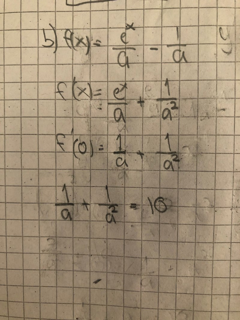 Det är inte helt tydligt, eftersom de aldrig skriver eller , men eftersom de säger "För vilket värde på a är y'(0)", skulle jag anta att funktionen y beror på x, och inte a. a är en okänd konstant. Det innebär att du behöver derivera med avseende på x, inte a. :)