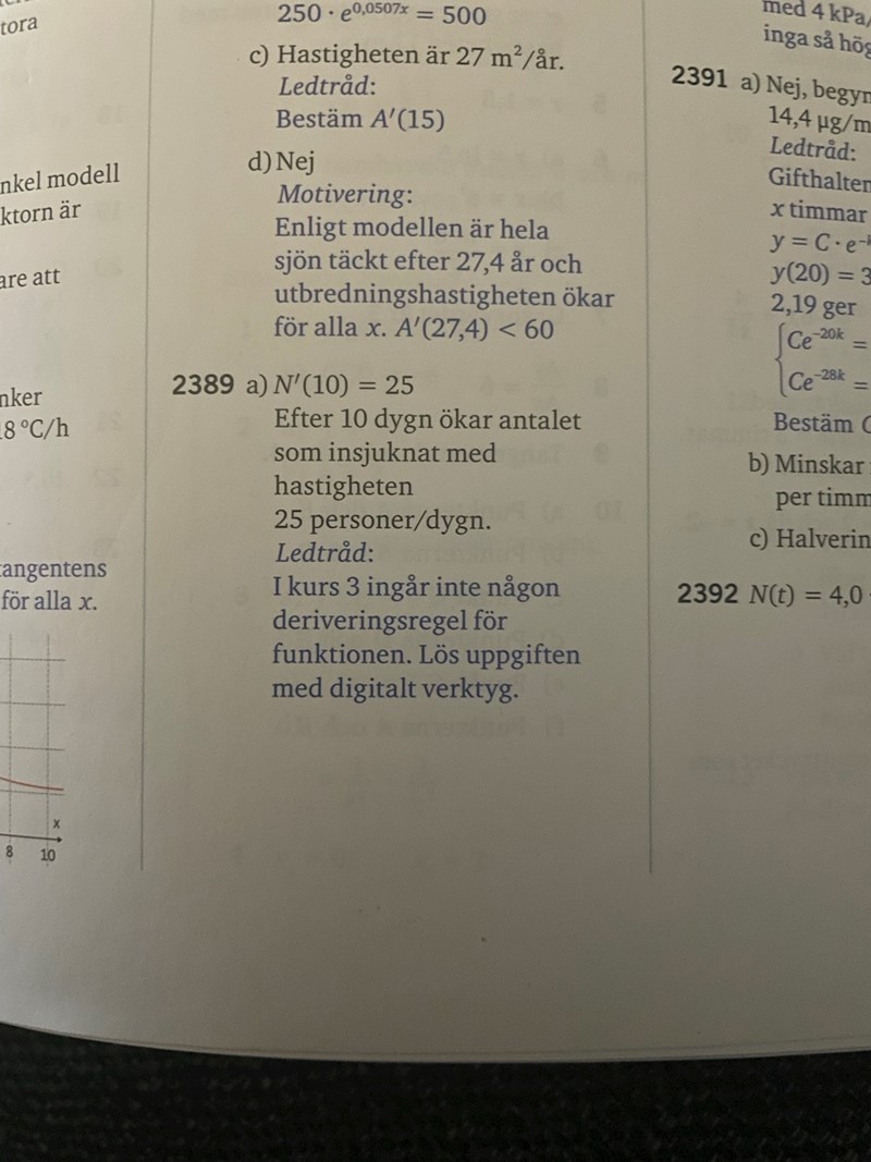 Dkcre skrev:Lite humor ändå, i facit så står det en ledtråd till frågan: I kurs 3 tas inte någon deriveringsregel upp för att lösa uppgiften, använd ett digitalt verktyg. :P