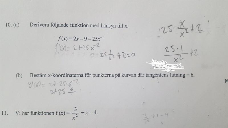 a) är du klar med på rad 1, men sedan börjar du sätta derivatan till 0 av någon anledning.