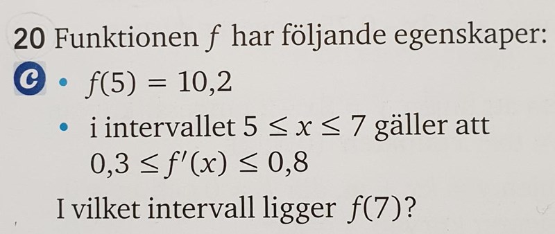 Svar: 10,8 ≤ f(7) ≤ 11,8