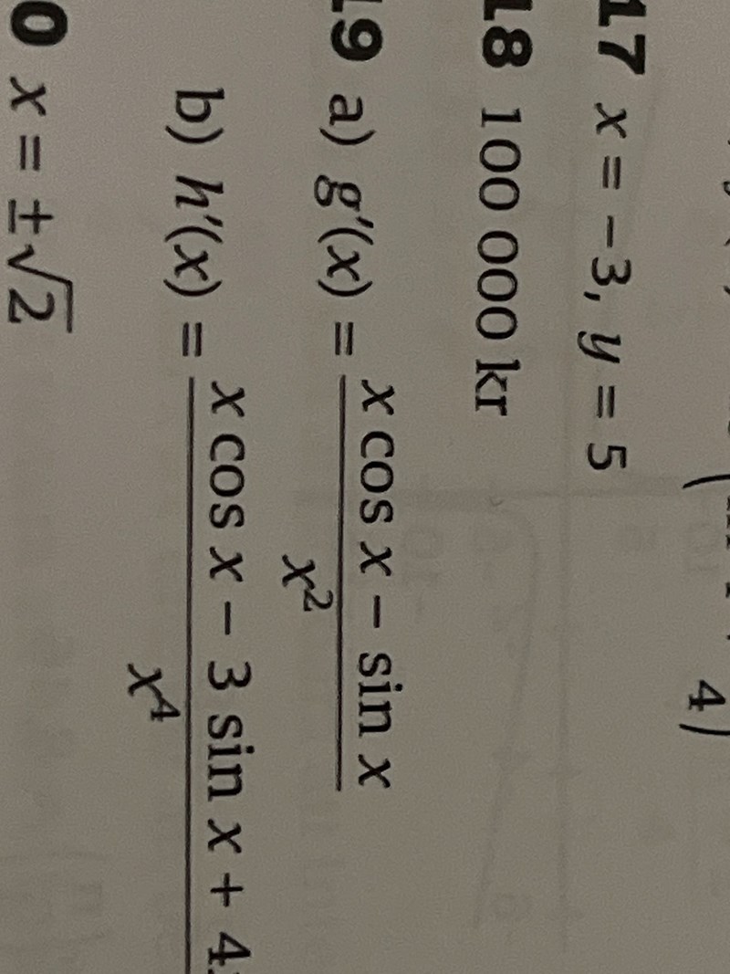 Har svårt att derivera klart denna funktion fick fram cos x/x vilket kändes fel (och var fel).