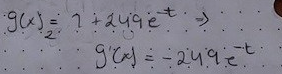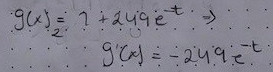 g(x) = 1 + 249e-t och g'(x) = -249e-2t.
