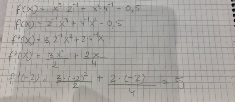 därefter satte jag in x=-2 i derivatans funktion men fick fel svar.