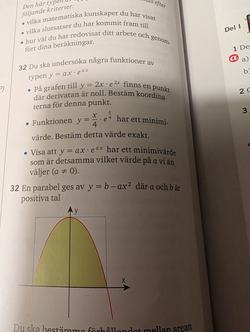 Fråga 32 punkt 3. Jag kan inte visa det. Jag vet att det ska bli -1/e, men går ej.