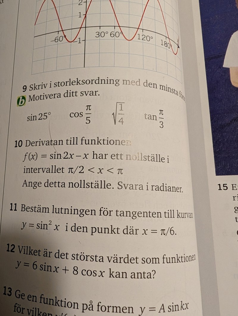 Jag vet inte hur man deriverar sin2x-x.