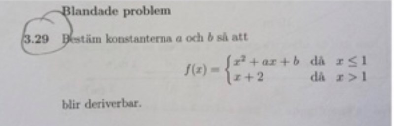 Uttryckt i ord istället: funktionsvärdet och derivatan ska vara lika oavsett om du närmar dig från vänster () eller höger ().