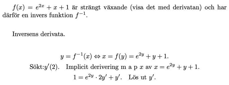 Använd Inversa funktionssatsen. Hur lyder satsen? (Läs i din lärobok om du inte kan den utantill.)