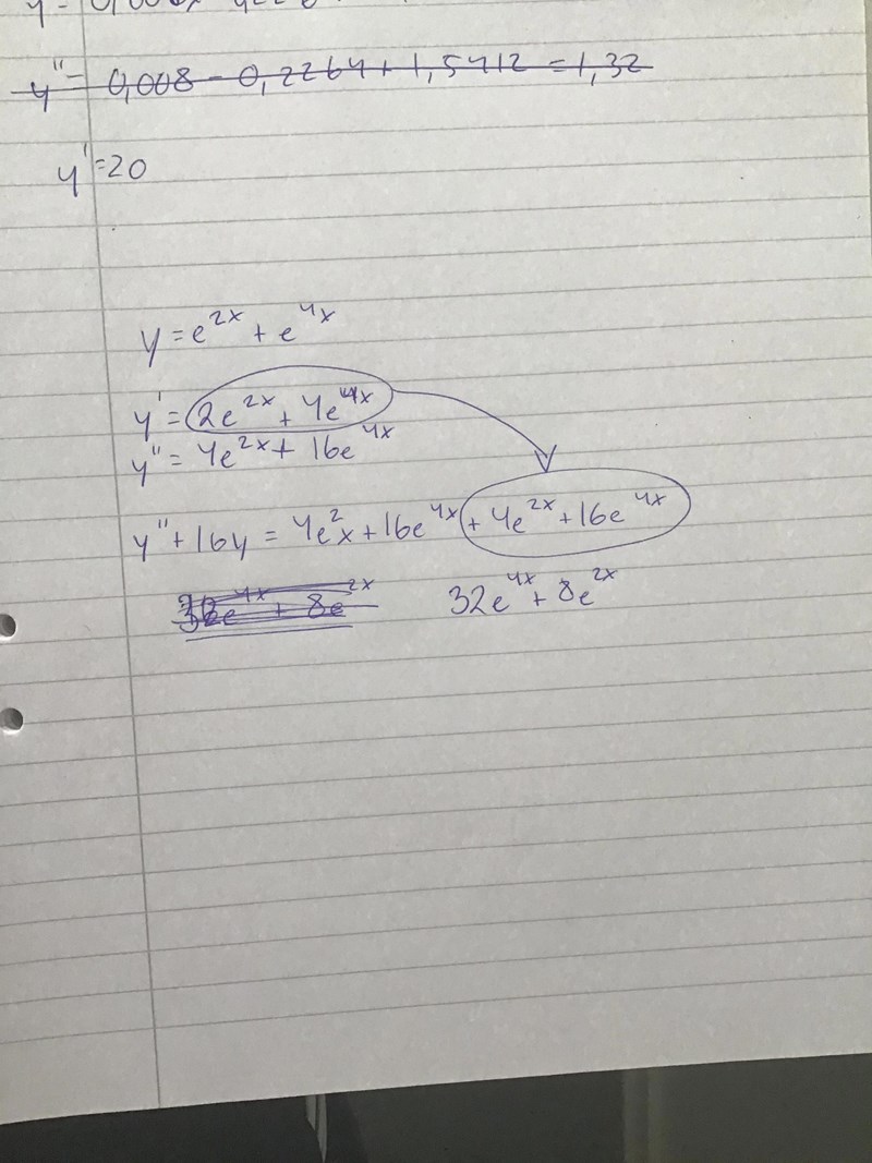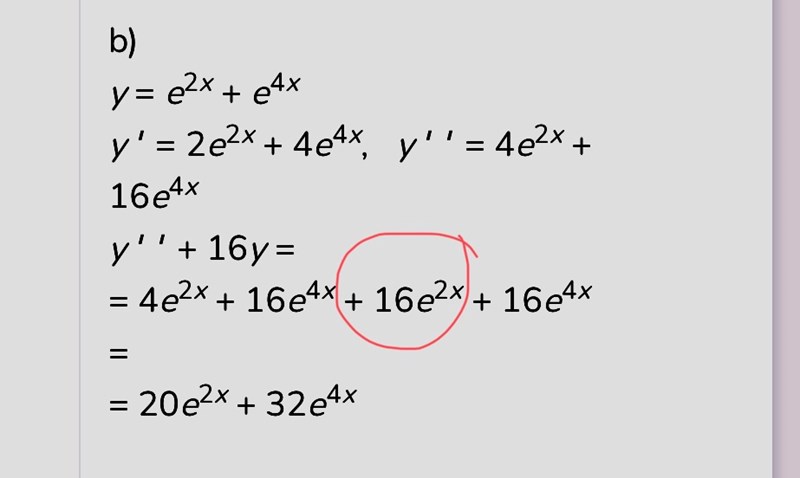 Förenkla y″+16y om y= e2x+e4x