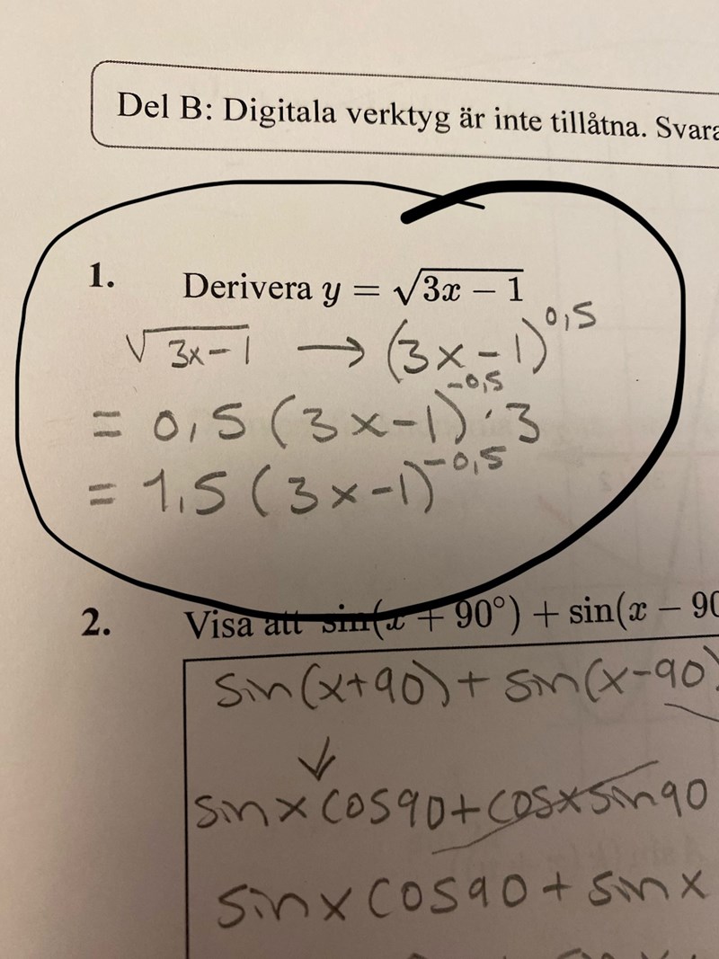 Ditt svar är samma som facits, bara skrivet på ett annat sätt. och .