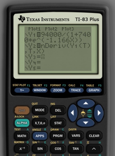 Jag har funktionen y=94000/1+7400 ¤ e^-1.166x