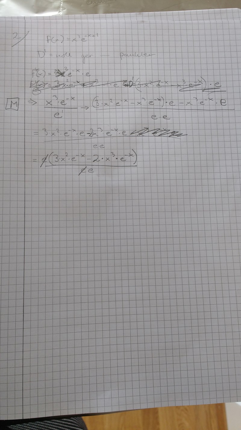 gulfi52 skrev :woozah skrev :Till att börja med så har du inte en kvot som funktion av . Det du dividerar med är ju utan tvekan en konstant. Så du har enbart en produkt i täljaren som du måste använda produktregeln på.