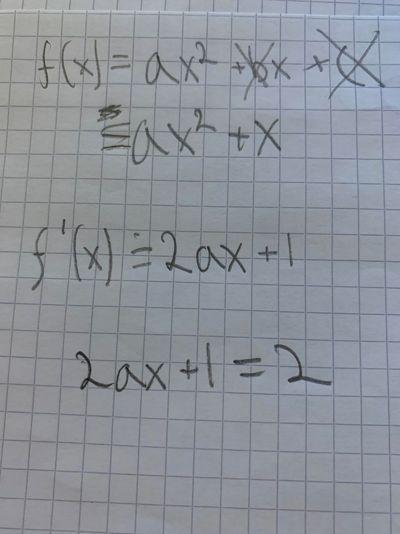 Vi vill således hitta ett x för viket derivatan till andragradsfunktionen är 2, dvs
