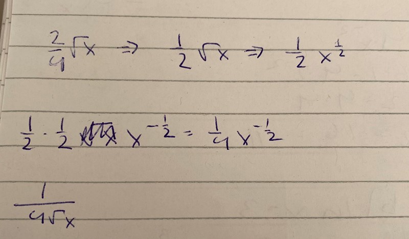 Okej. Så tänker jag rätt om jag deriverar 2/4*√x till 1/4√x?
