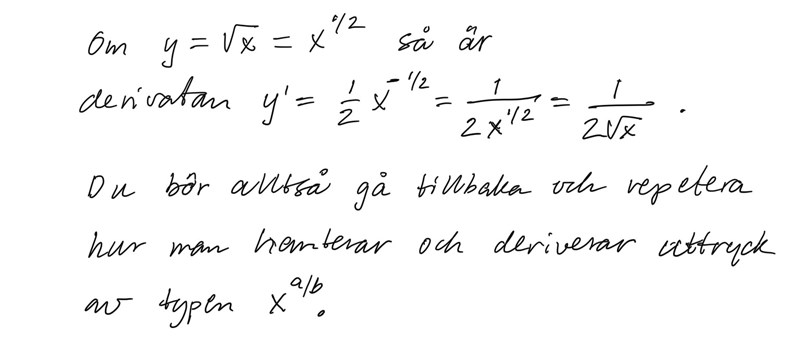 Kan man derivera x0,5 till 0,5x-0,5? För då kan ju √x bli både x1/2 och 1/√x.