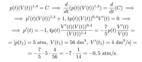Kedjeregeln ger sedan att derivatan av (V(t))1,4 är 1,4*(V(t))0,4*V'(t), vilket är orsaken till den extra faktorn V'(t).
