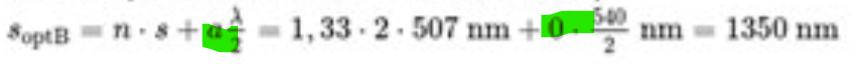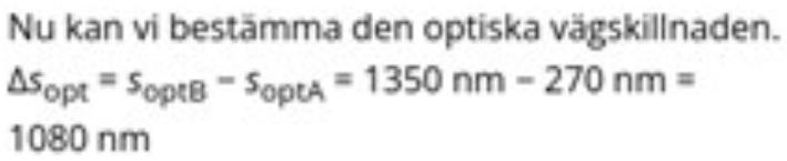 Men man gör samma sak här, men man definierar något som man kallar optisk vägskillnad, där man lägger in fasvändningen som om den vore en vägskillnad (förstår inte riktigt varför man inte använder samma begrepp i de två uppgifterna... Det ser ju ut att vara samma läromedel, eller hur?)